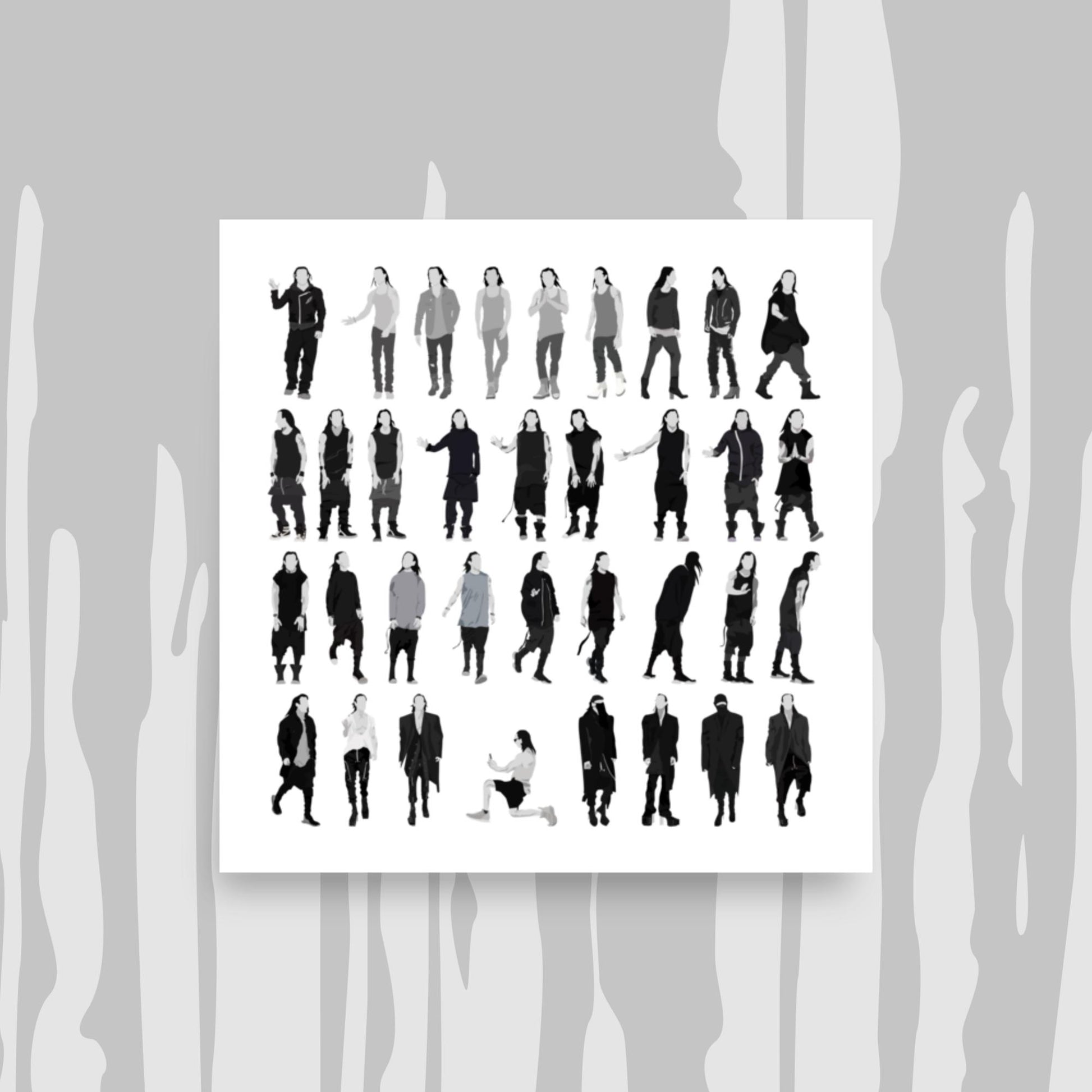 We recreated every image of a crooked smiling Rick quickly thanking the crowd for attending his men’s shows over the last ~20 years. His uniform changes at a leisurely pace, often consistent with the same outfit worn at the previous handful of shows. Rick describes this mentality of dressing akin to a priest or a prisoner. The rationale for this being that “not thinking about [his] clothes let’s [him] focus on clothes for other people”.